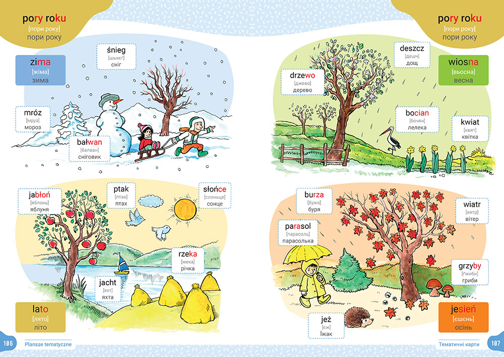 Jêzyk polski uznawany jest za jeden z najtrudniejszych na ¶wiecie jêzyków, dlatego mo¿emy wspieraæ dzieci z Ukrainy ofiarowuj±c im tê ksi±¿kê. Jest bardzo przejrzy¶cie przygotowana, bogato ilustrowana i bêdzie pomocn± lektur± dla najm³odszych. To ponad 100 stron s³ów i zwrotów. Warto sprezentowaæ j± potrzebuj±cym dzieciom. Nasz egzemplarz ju¿ nied³ugo trafi w rêce Stasia rówie¶niczki.