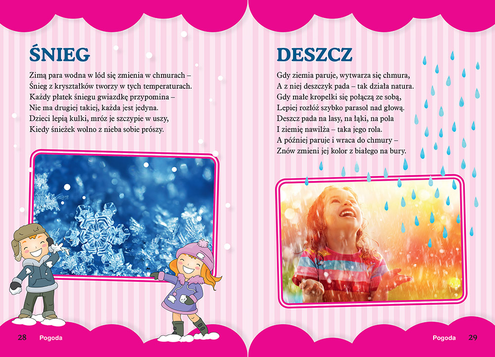 Skąd się wzięła ta pogoda? czyli fascynująca przyroda to idealna książka dla wszystkich ciekawskich dzieci! Książeczka zawiera krótkie wierszyki, które wyjaśniają niezwykłe zjawiska przyrodnicze i klimatyczne, katastrofy naturalne, pory roku, rodzaje przyrody występującej na Ziemi, a nawet podstawy astronomii! W środku znajdują się piękne ilustracje i zdjęcia, dzięki którym żadne dziecko nie będzie się nudzić.