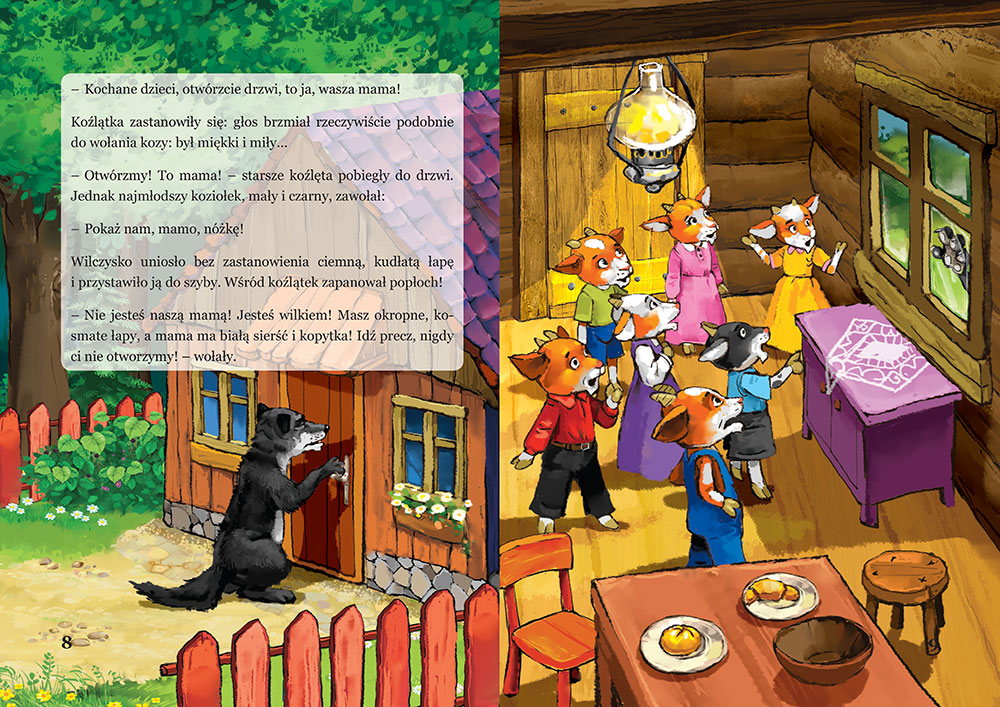 Ta pouczająca baśń przekazuje dzieciom prawdy, o których zawsze trzeba pamiętać. Nie wolno otwierać drzwi obcym, trzeba zawsze słuchać rodziców - to przestrogi, które nie tracą na aktualności i dzisiaj. Podane są w formie ciekawej baśni, która została barwnie zilustrowana.