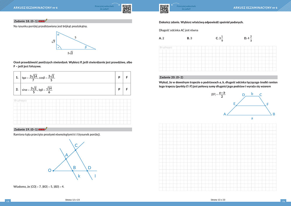 Wszystko, czego potrzebujesz do efektywnego przygotowania siê do egzaminu, znajdziesz w jednej ksi±¿ce - od szczegó³owego opisu przebiegu egzaminu, przez próbne arkusze z mnóstwem zadañ, a¿ po klucz odpowiedzi do arkuszy. W ksi±¿ce znajdziesz ubieg³oroczny arkusz, modelowo rozwi±zany, a pod kodami QR szukaj kluczy z odpowiedziami oraz wskazówek do ka¿dego zadania.