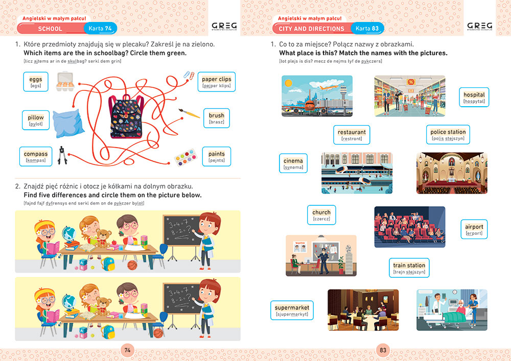 Ze wzglêdu na zakres tematyczny s³ownictwa, który jest wymagany równie¿ od ucznia klas 1-3, polecamy Angielski w ma³ym palcu! równie¿ dzieciom, które rozpoczê³y ju¿ naukê w szkole, ale potrzebuj± dodatkowego wsparcia - ksi±¿eczka ¶wietnie sprawdzi siê do powtórek lub uzupe³nienia szkolnej pracy.