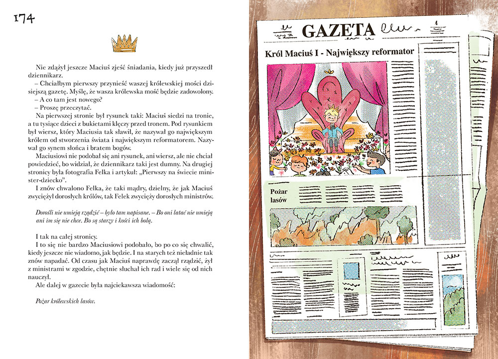 Zostać królem i urządzić świat według swoich zasad i pragnień - to marzenie wielu z nas pamięta z własnego dzieciństwa. I właśnie o tym, co się stało, gdy królem został mały chłopiec, opowiada książka Król Maciuś Pierwszy. Reformy małego władcy miały przynieść dzieciom radość i szczęście, zaprowadzić w państwie sprawiedliwość, przynieść dobro i zapobiec złu. Czy się udały? Czy dzieci są w stanie naprawić świat dorosłych? Czy w rządzeniu państwem można kierować się dobrocią, altruizmem, szlachetnością? Odpowiedź na te pytania zaskoczy zarówno małego, jak i dorosłego czytelnika.