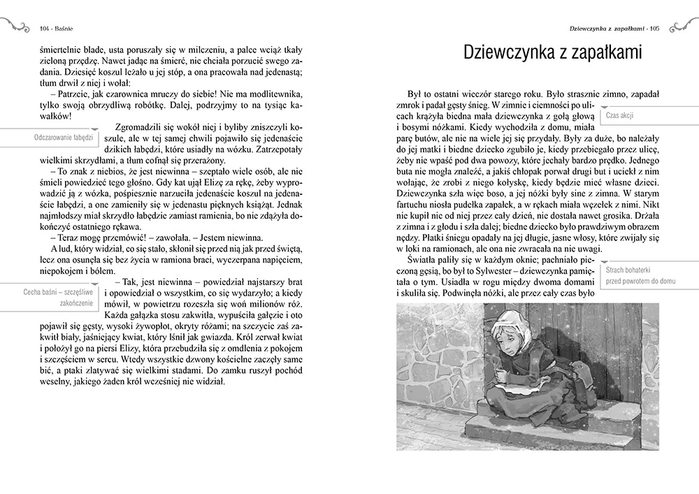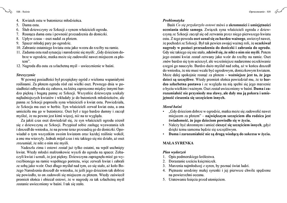 Wydanie Baśni kompletne bez skrótów i cięć w treści. W tym wydaniu znajdziesz odpowiedzi na pytania z podręcznika - „pewniak na teście”, czyli wskazanie zagadnień, które zwykle pojawiają się w pytaniach z danej lektury we wszelkich testach sprawdzających wiedzę, a także w podręcznikach i na klasówkach. Książka zawiera pełen tekst lektury. Na końcu książki zamieszczono opracowanie, w którym znajduje się bardzo szczegółowe streszczenie oraz drugie skrócone, ułatwiające szybkie przygotowanie się przed lekcją. Opracowanie zawiera ponadto plan wydarzeń, wnikliwie wyjaśnioną problematykę oraz szerokie charakterystyki bohaterów.