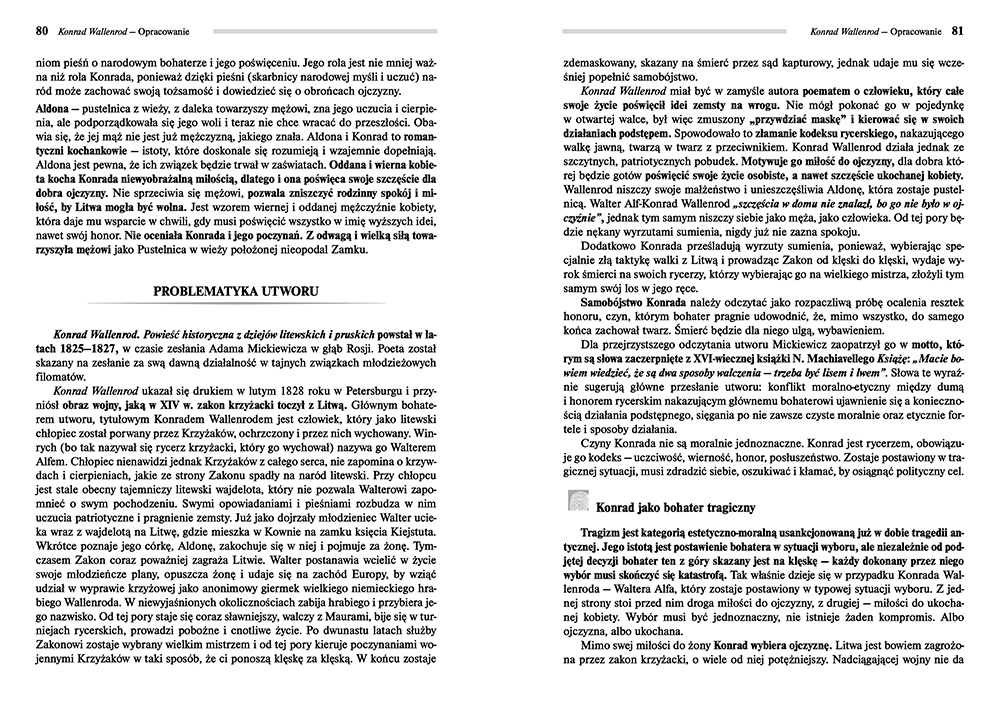 Konrad Wallenrod to powieść poetycka autorstwa Adama Mickiewicza. Wieszcz posłużył się akcją toczącą się w średniowieczu, aby ukazać problemy z polskim patriotyzmem.
